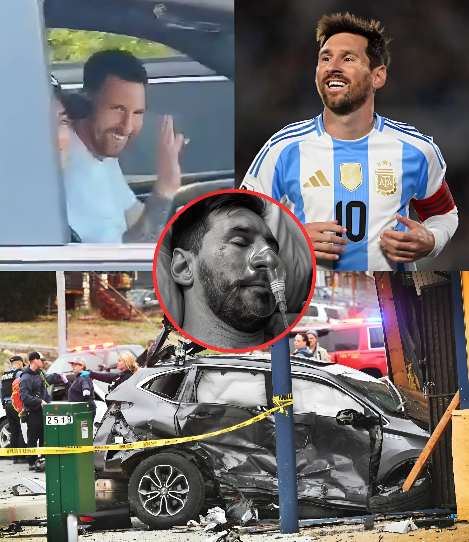 Eyewitnesses at the scene described the crash as terrifying. A sudden collision, the screech of tires, the brutal sound of metal folding against metal. Dust and glass filled the air, and in the middle of that chaos was Messi — the legend, the captain, the idol of millions.