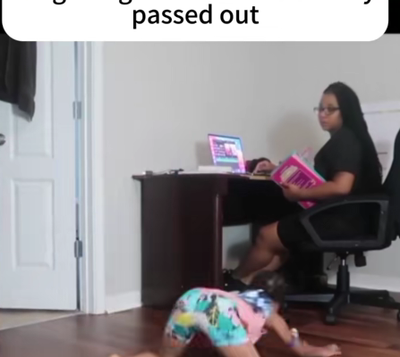 In a hilarious yet jaw-dropping clip making waves online, a mother completely missed what her child was up to—despite being just a few feet away. The viral video shows the little one sneaking across the floor, clearly up to mischief, while mom stayed glued to her screen and book, totally unaware of what was happening behind her.