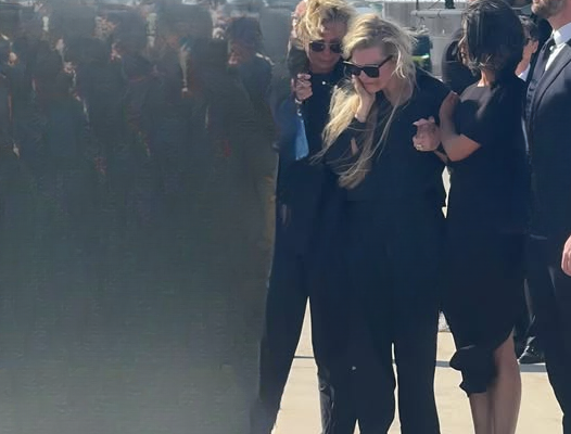 In one of the most poignant moments of the farewell, Erika pressed her cheek gently against her husband’s hand. Overcome with emotion, she leaned fully onto the casket, holding it as though trying to resist the finality of goodbye.
